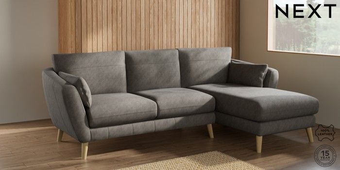 6.12.1 Buy Orlo Leather Medium Sofa Chaise - Right Hand Antiqued Leather Grey Retro Tapered - Light from the Laura Ashley online shop Click here to use our website with more accessibility support, for example screen readers