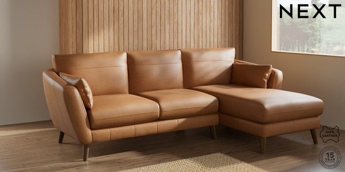 6.12.1 Buy Orlo Leather Medium Sofa Chaise - Right Hand Antiqued Leather Light Tan Brown Retro Tapered - Mid from the Laura Ashley online shop Click here to use our website with more accessibility support, for example screen readers