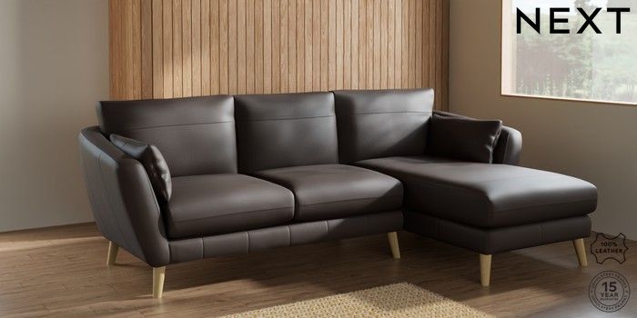 6.12.1 Buy Orlo Leather Medium Sofa Chaise - Right Hand Columbia Dark Brown Retro Tapered - Light from the Laura Ashley online shop Click here to use our website with more accessibility support, for example screen readers