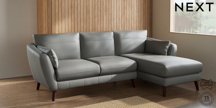 6.12.1 Buy Orlo Leather Medium Sofa Chaise - Right Hand Columbia French Grey Retro Tapered - Dark Brown from the Laura Ashley online shop Click here to use our website with more accessibility support, for example screen readers