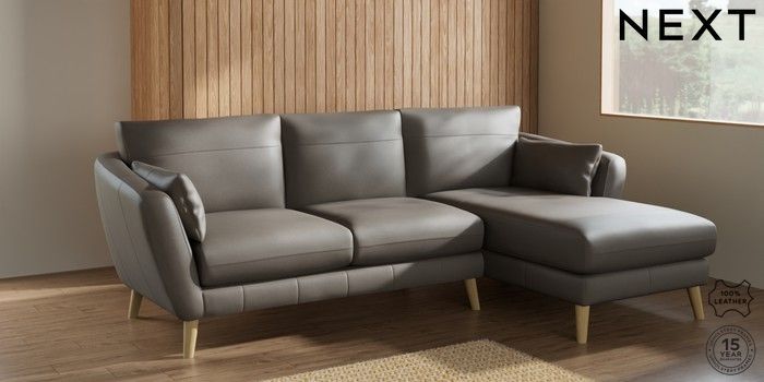 6.12.1 Buy Orlo Leather Medium Sofa Chaise - Right Hand Turin Leather French Grey Retro Tapered - Light from the Laura Ashley online shop Click here to use our website with more accessibility support, for example screen readers