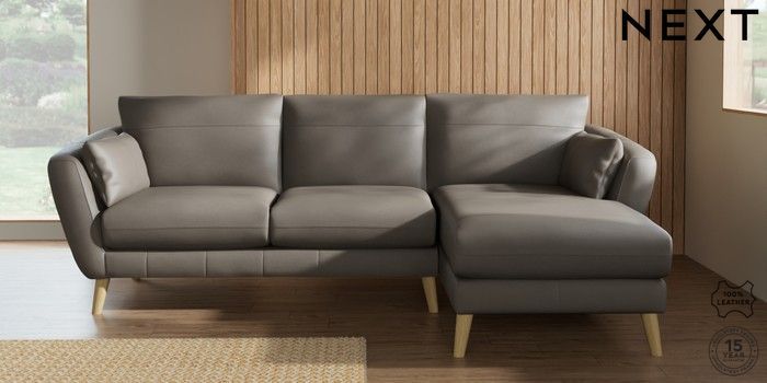 7.0.3 Buy Orlo Leather Medium Sofa Chaise - Right Hand Turin Leather French Grey Retro Tapered - Light from the Laura Ashley online shop Click here to use our website with more accessibility support, for example screen readers