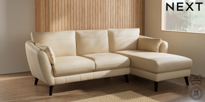 6.12.1 Buy Orlo Leather Medium Sofa Chaise - Right Hand Turin Leather Light Natural Retro Tapered - Dark from the Laura Ashley online shop Click here to use our website with more accessibility support, for example screen readers