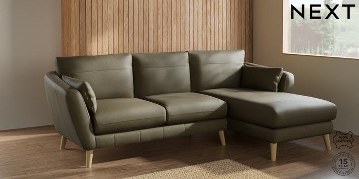 6.12.1 Buy Orlo Leather Medium Sofa Chaise - Right Hand Turin Leather Moss Green Retro Tapered - Light from the Laura Ashley online shop Click here to use our website with more accessibility support, for example screen readers