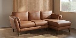 6.12.1 Buy Orlo Leather Medium Sofa Chaise - Right Hand Turin Leather Tan Brown Retro Tapered - Mid from the Laura Ashley online shop Click here to use our website with more accessibility support, for example screen readers
