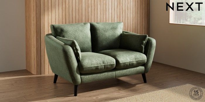 6.12.1 Buy Orlo Relaxed Sit 2 Seater Small Sofa Boucle Chenille Dark Moss Green Retro Tapered - Dark from the Laura Ashley online shop Click here to use our website with more accessibility support, for example screen readers