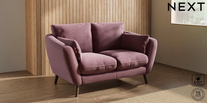 6.12.1 Buy Orlo Relaxed Sit 2 Seater Small Sofa Fine Chenille Easy Clean Mid Mulberry Purple Retro Tapered - Mid from the Laura Ashley online shop Click here to use our website with more accessibility support, for example screen readers