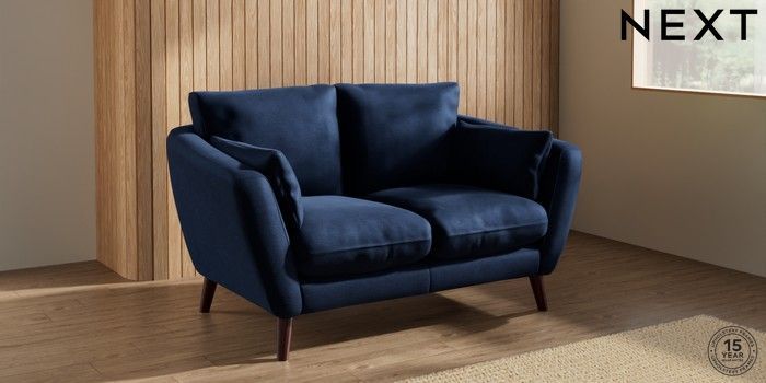 6.12.1 Buy Orlo Relaxed Sit 2 Seater Small Sofa Luxe Chenille Navy Blue Retro Tapered - Dark Brown from the Laura Ashley online shop Click here to use our website with more accessibility support, for example screen readers