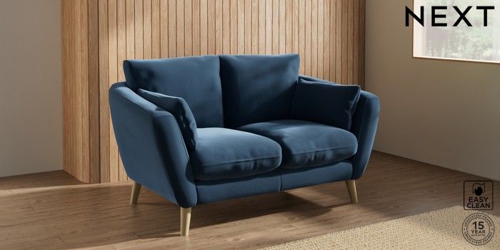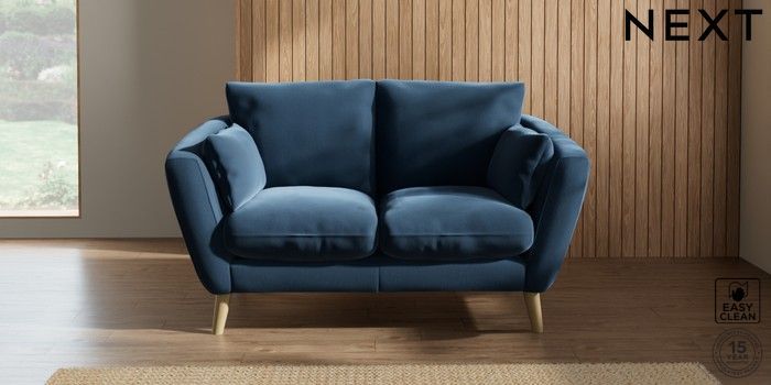 6.12.1 Buy Orlo Relaxed Sit 2 Seater Small Sofa Plush Velvet Easy Clean Airforce Blue Retro Tapered - Light from the Laura Ashley online shop Click here to use our website with more accessibility support, for example screen readers