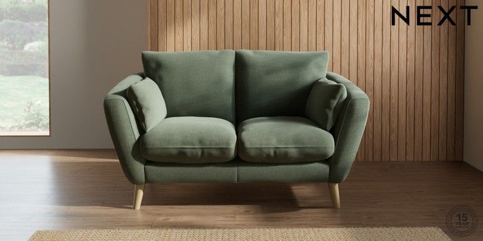 6.12.1 Buy Orlo Relaxed Sit 2 Seater Small Sofa Relaxed Linen Look Dark Green Retro Tapered - Light from the Laura Ashley online shop Click here to use our website with more accessibility support, for example screen readers