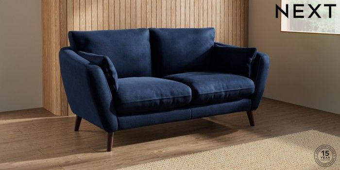6.12.1 Buy Orlo Relaxed Sit 3 Seater Small Sofa Luxe Chenille Navy Blue Retro Tapered - Dark Brown from the Laura Ashley online shop Click here to use our website with more accessibility support, for example screen readers