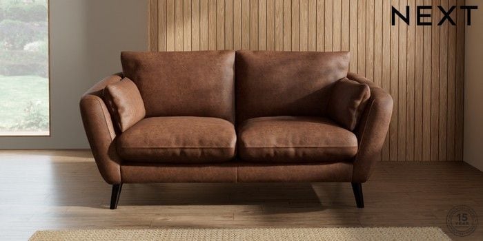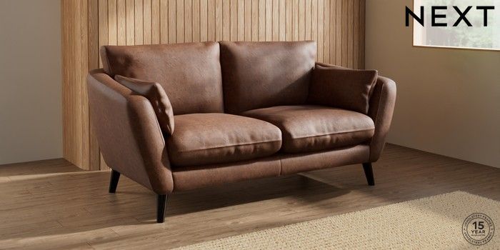 6.12.1 Buy Orlo Relaxed Sit 3 Seater Small Sofa Monza Faux Leather Easy Clean Chestnut Brown Retro Tapered - Dark from the Laura Ashley online shop Click here to use our website with more accessibility support, for example screen readers