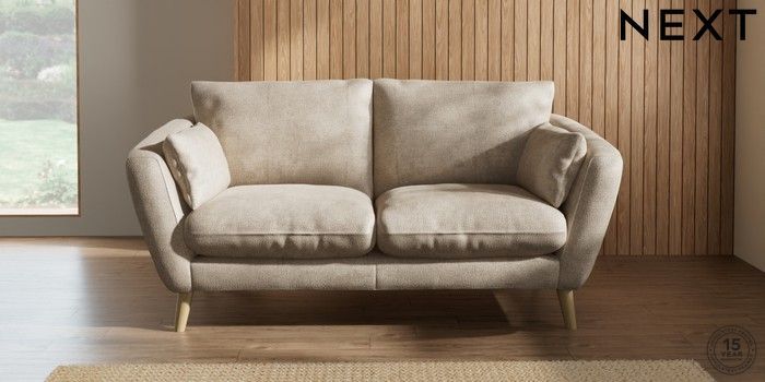 6.12.1 Buy Orlo Relaxed Sit 3 Seater Small Sofa Plush Chenille Light Natural Retro Tapered - Light from the Laura Ashley online shop Click here to use our website with more accessibility support, for example screen readers