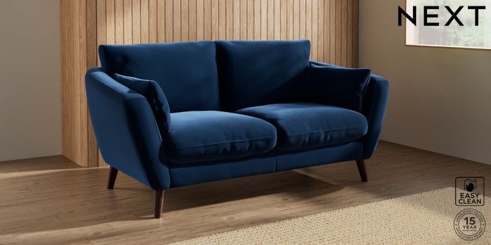 6.12.1 Buy Orlo Relaxed Sit 3 Seater Small Sofa Plush Velvet Easy Clean Navy Blue Retro Tapered - Dark Brown from the Laura Ashley online shop Click here to use our website with more accessibility support, for example screen readers