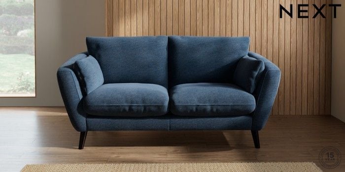 6.12.1 Buy Orlo Relaxed Sit 3 Seater Small Sofa Ripple Chenille Dark Blue Retro Tapered - Dark from the Laura Ashley online shop Click here to use our website with more accessibility support, for example screen readers