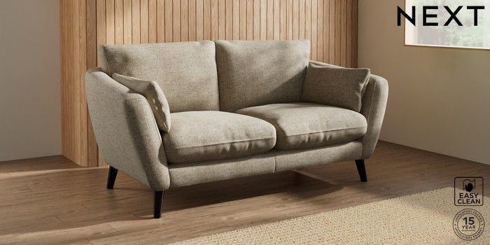 6.12.1 Buy Orlo Relaxed Sit 3 Seater Small Sofa Woven Chenille Easy Clean Mid Natural Retro Tapered - Dark from the Laura Ashley online shop Click here to use our website with more accessibility support, for example screen readers
