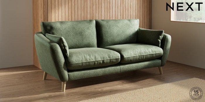 6.12.1 Buy Orlo Relaxed Sit 3 Seater Sofa Boucle Chenille Dark Moss Green Retro Tapered - Light from the Laura Ashley online shop Click here to use our website with more accessibility support, for example screen readers