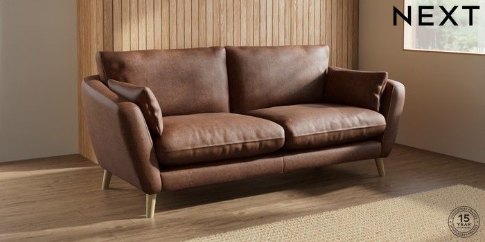 6.12.1 Buy Orlo Relaxed Sit 3 Seater Sofa Monza Faux Leather Easy Clean Chestnut Brown Retro Tapered - Light from the Laura Ashley online shop Click here to use our website with more accessibility support, for example screen readers