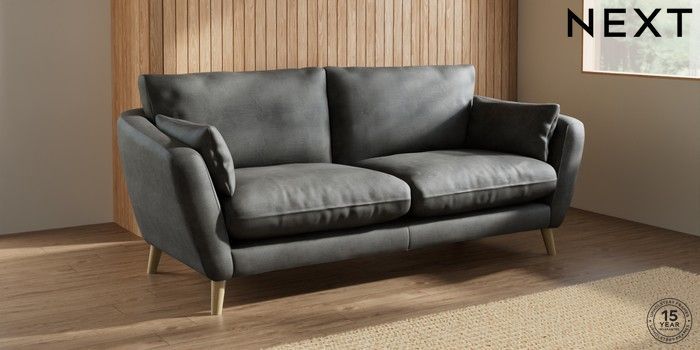6.12.1 Buy Orlo Relaxed Sit 3 Seater Sofa Monza Faux Leather Easy Clean Dark Grey Retro Tapered - Light from the Laura Ashley online shop Click here to use our website with more accessibility support, for example screen readers