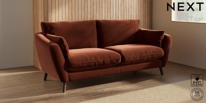 6.12.1 Buy Orlo Relaxed Sit 3 Seater Sofa Plush Velvet Easy Clean Ginger Orange Retro Tapered - Mid from the Laura Ashley online shop Click here to use our website with more accessibility support, for example screen readers