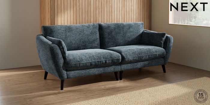 6.12.1 Buy Orlo Relaxed Sit 4 Seater Sofa Chunky Chenille Dark Navy Blue Retro Tapered - Dark from the Laura Ashley online shop Click here to use our website with more accessibility support, for example screen readers
