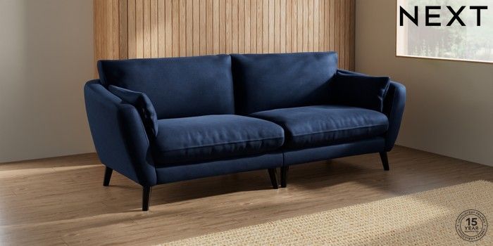 6.12.1 Buy Orlo Relaxed Sit 4 Seater Sofa Luxe Chenille Navy Blue Retro Tapered - Dark from the Laura Ashley online shop Click here to use our website with more accessibility support, for example screen readers