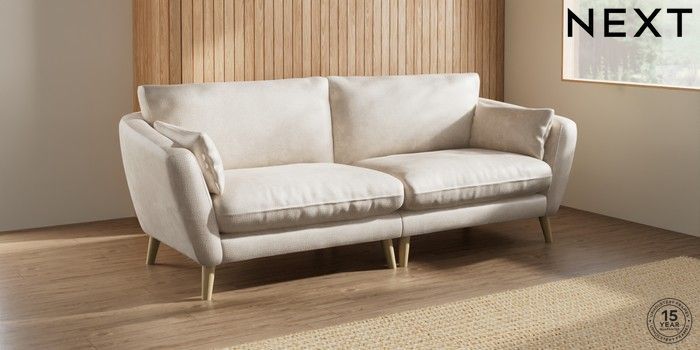 6.12.1 Buy Orlo Relaxed Sit 4 Seater Sofa Plush Chenille Oyster Retro Tapered - Light from the Laura Ashley online shop Click here to use our website with more accessibility support, for example screen readers