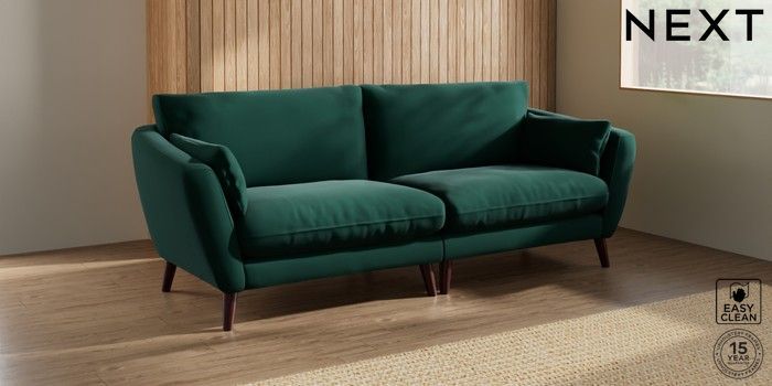 6.12.1 Buy Orlo Relaxed Sit 4 Seater Sofa Plush Velvet Easy Clean Bottle Green Retro Tapered - Dark Brown from the Laura Ashley online shop Click here to use our website with more accessibility support, for example screen readers
