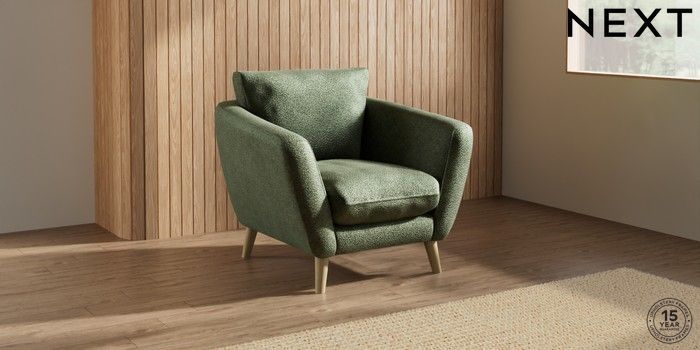 6.12.1 Buy Orlo Relaxed Sit Armchair Boucle Chenille Dark Moss Green Retro Tapered - Light from the Laura Ashley online shop Click here to use our website with more accessibility support, for example screen readers