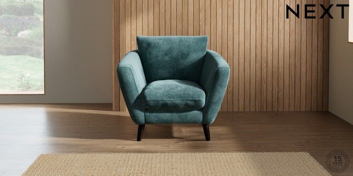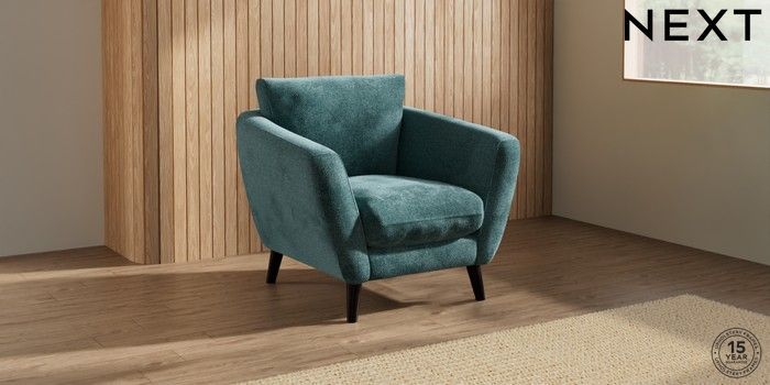 6.12.1 Buy Orlo Relaxed Sit Armchair Chunky Chenille Mid Teal Green Retro Tapered - Dark from the Laura Ashley online shop Click here to use our website with more accessibility support, for example screen readers