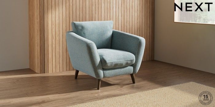 6.12.1 Buy Orlo Relaxed Sit Armchair Chunky Marl Mid Blue Retro Tapered - Mid from the Laura Ashley online shop Click here to use our website with more accessibility support, for example screen readers