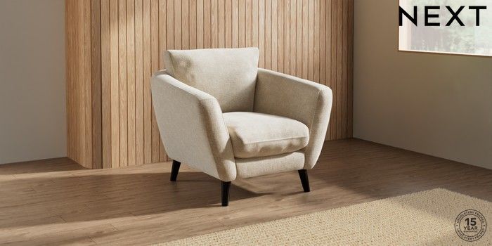 6.12.1 Buy Orlo Relaxed Sit Armchair Chunky Weave Cream Retro Tapered - Dark from the Laura Ashley online shop Click here to use our website with more accessibility support, for example screen readers