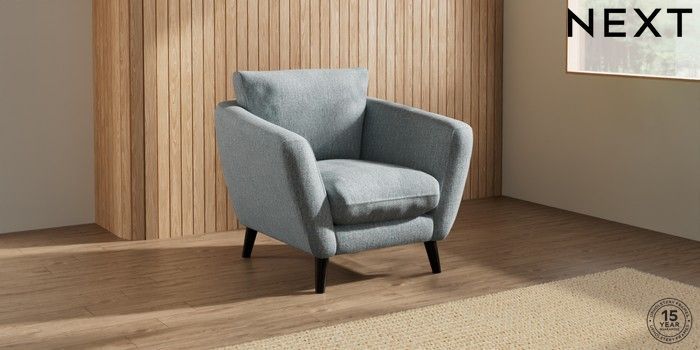 6.12.1 Buy Orlo Relaxed Sit Armchair Chunky Weave Mid Blue Retro Tapered - Dark from the Laura Ashley online shop Click here to use our website with more accessibility support, for example screen readers