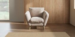 6.12.1 Buy Orlo Relaxed Sit Armchair Cotswold Chenille Light Natural Retro Tapered - Light from the Laura Ashley online shop Click here to use our website with more accessibility support, for example screen readers