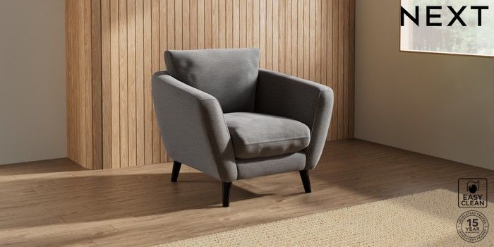 6.12.1 Buy Orlo Relaxed Sit Armchair Fine Chenille Easy Clean Dark Smoke Grey Retro Tapered - Dark from the Laura Ashley online shop Click here to use our website with more accessibility support, for example screen readers