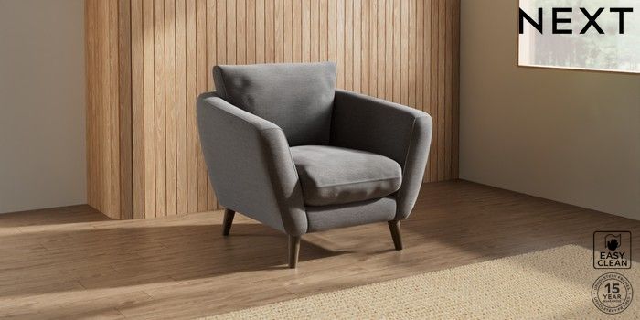6.12.1 Buy Orlo Relaxed Sit Armchair Fine Chenille Easy Clean Dark Smoke Grey Retro Tapered - Mid from the Laura Ashley online shop Click here to use our website with more accessibility support, for example screen readers