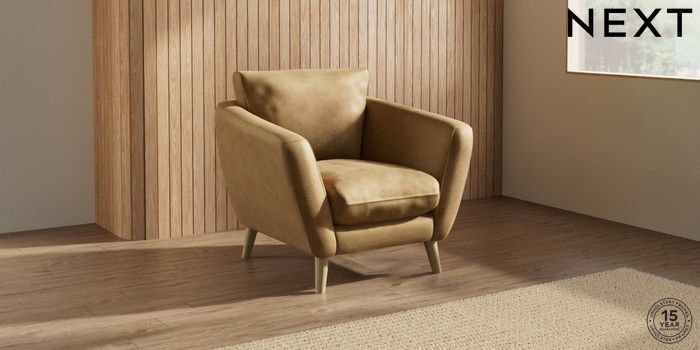 7.0.3 Buy Orlo Relaxed Sit Armchair Luxe Chenille Honey Yellow Retro Tapered - Light from the Laura Ashley online shop Click here to use our website with more accessibility support, for example screen readers
