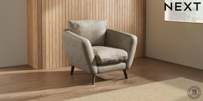 6.12.1 Buy Orlo Relaxed Sit Armchair Monza Faux Leather Easy Clean Mink Brown Retro Tapered - Mid from the Laura Ashley online shop Click here to use our website with more accessibility support, for example screen readers