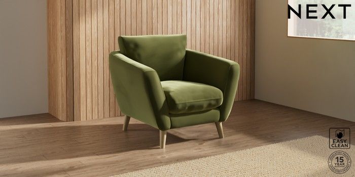 6.12.1 Buy Orlo Relaxed Sit Armchair Plush Velvet Easy Clean Mid Olive Green Retro Tapered - Light from the Laura Ashley online shop Click here to use our website with more accessibility support, for example screen readers