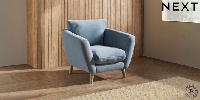 6.12.1 Buy Orlo Relaxed Sit Armchair Relaxed Linen Look Mid Blue Retro Tapered - Light from the Laura Ashley online shop Click here to use our website with more accessibility support, for example screen readers