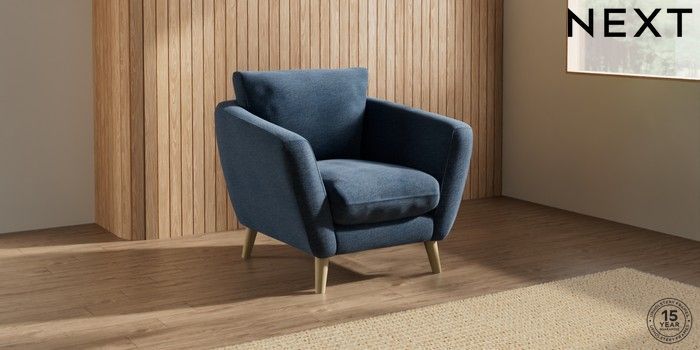 7.0.3 Buy Orlo Relaxed Sit Armchair Ripple Chenille Dark Blue Retro Tapered - Light from the Laura Ashley online shop Click here to use our website with more accessibility support, for example screen readers