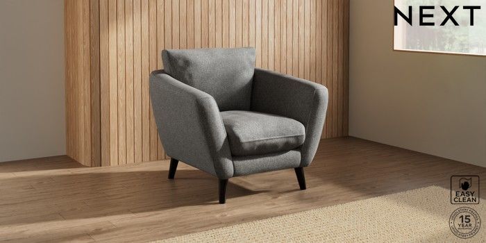 6.12.1 Buy Orlo Relaxed Sit Armchair Tweedy Blend Easy Clean Dark Grey Retro Tapered - Dark from the Laura Ashley online shop Click here to use our website with more accessibility support, for example screen readers