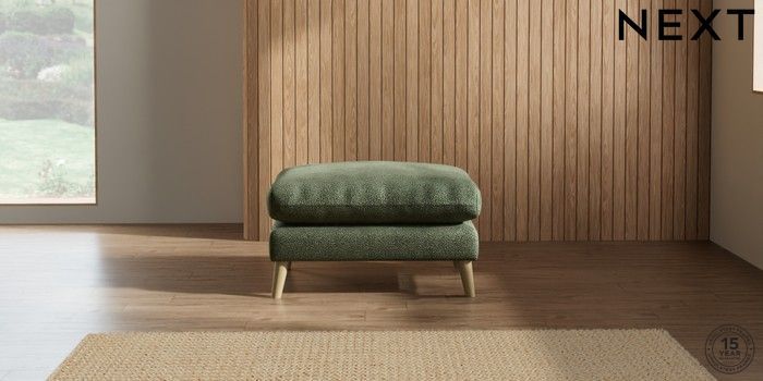 6.12.1 Buy Orlo Relaxed Sit Footstool Boucle Chenille Dark Moss Green Retro Tapered - Light from the Laura Ashley online shop Click here to use our website with more accessibility support, for example screen readers