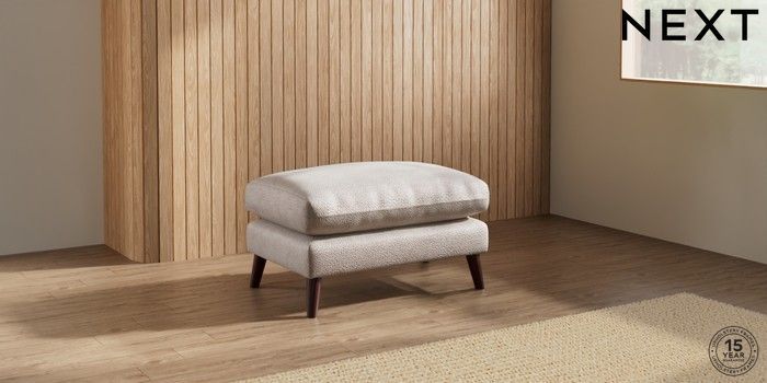 6.12.1 Buy Orlo Relaxed Sit Footstool Boucle Chenille Light Natural Retro Tapered - Dark Brown from the Laura Ashley online shop Click here to use our website with more accessibility support, for example screen readers