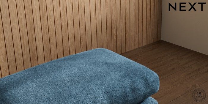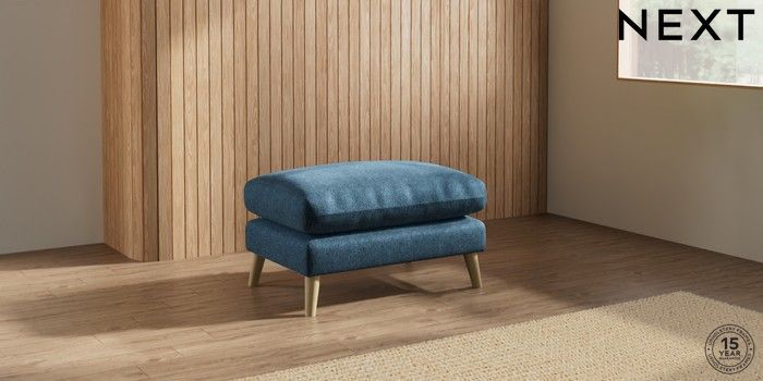 7.0.3 Buy Orlo Relaxed Sit Footstool Cotswold Chenille Dark Blue Retro Tapered - Light from the Laura Ashley online shop Click here to use our website with more accessibility support, for example screen readers
