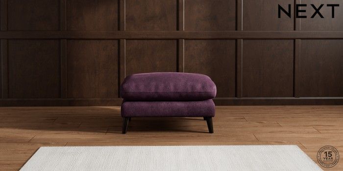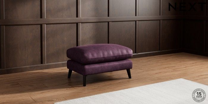 6.12.1 Buy Orlo Relaxed Sit Footstool Plush Chenille Dark Plum Purple Retro Tapered - Dark from the Laura Ashley online shop Click here to use our website with more accessibility support, for example screen readers