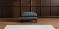 6.12.1 Buy Orlo Relaxed Sit Footstool Plush Chenille Slate Blue Retro Tapered - Dark from the Laura Ashley online shop Click here to use our website with more accessibility support, for example screen readers