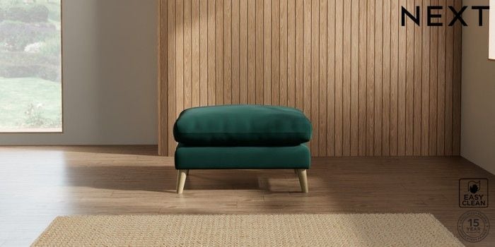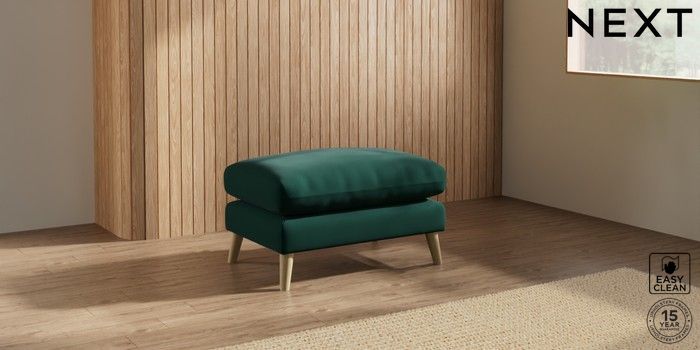 6.12.1 Buy Orlo Relaxed Sit Footstool Plush Velvet Easy Clean Bottle Green Retro Tapered - Light from the Laura Ashley online shop Click here to use our website with more accessibility support, for example screen readers