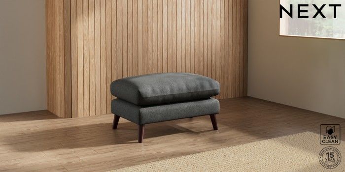 6.12.1 Buy Orlo Relaxed Sit Footstool Tweedy Blend Easy Clean Charcoal Grey Retro Tapered - Dark Brown from the Laura Ashley online shop Click here to use our website with more accessibility support, for example screen readers