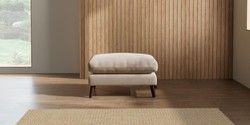 6.12.1 Buy Orlo Relaxed Sit Footstool Tweedy Blend Easy Clean Light Dove Natural Retro Tapered - Dark Brown from the Laura Ashley online shop Click here to use our website with more accessibility support, for example screen readers